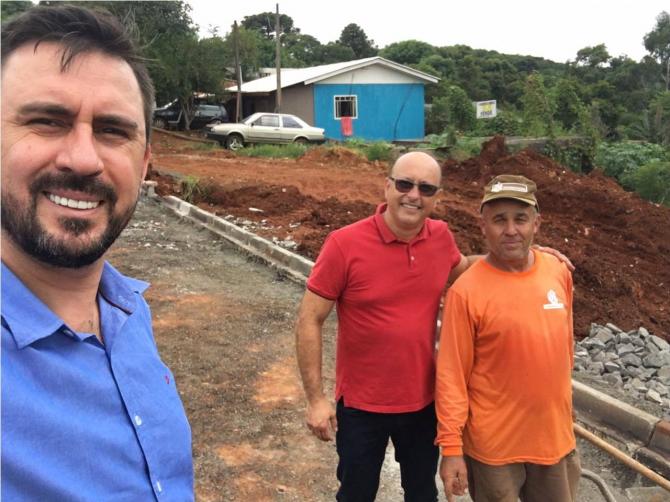 Júnior Gurtat e Anderson de Oliveira vistoriam pavimentação no Água Verde