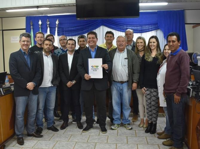 Em reunião com vereadores, prefeito sanciona lei 045/17