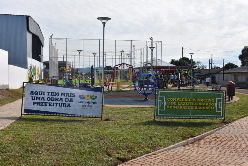 A Prefeitura de Laranjeiras do Sul, através da Secretaria de Esportes inaugurou no sábado, dia 4, no bairro Presidente Vargas o Complexo Esportivo e de Lazer Bernardo Guimarães Ribas Carli. A arena, estimada em R$ 414 mil reais foi viabilizada por intermédio do então deputado estadual através de uma solicitação do vereador Valmir Trindade-Sete. O espaço dispõe de campo de futebol sintético, academia ao ar livre, playground e paisagismo.