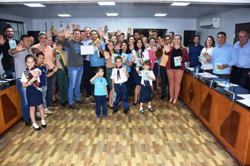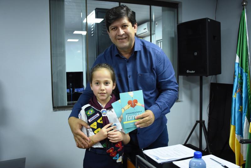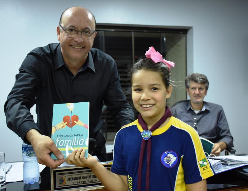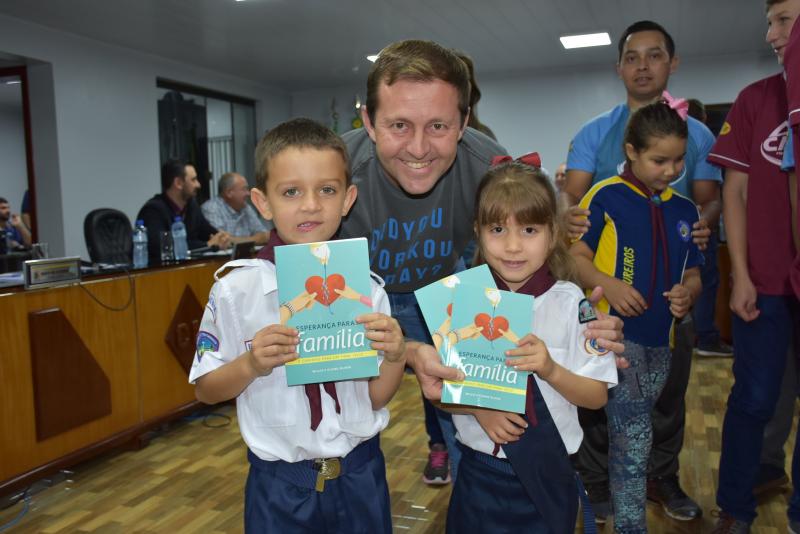 Os vereadores Carlos Alberto Machado-Magrão, Júnior Gurtat, João Aires, Marcio dos Alexandre e Anderson de Oliveira acrescentaram lembrando que a iniciativa ultrapassa os limites da religião, pois representa valores de cidadania. “Quem realiza boas ações por livre e espontânea vontade colabora no processo da construção da cidadania, fato que auxilia inclusive o poder público. Portanto, é justo que sejam homenageados por esta Casa”, concluíram os legisladores. Na oportunidade, cada vereador foi presentado pelas crianças com o livro Esperança para a Família, um estudo bíblico com conselhos e reflexões.