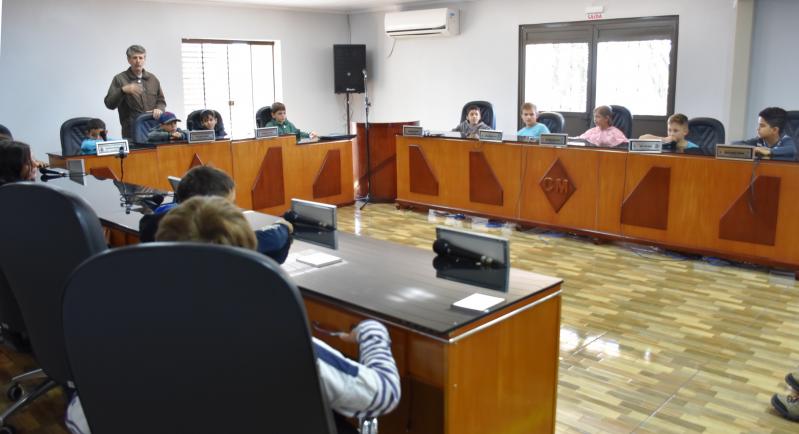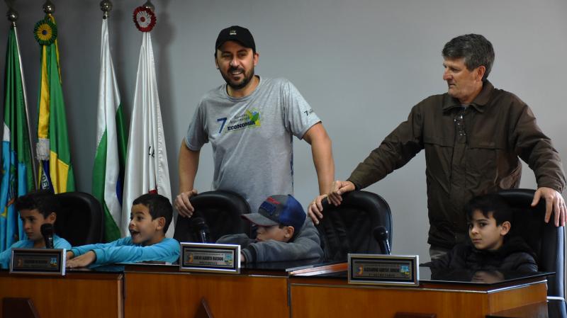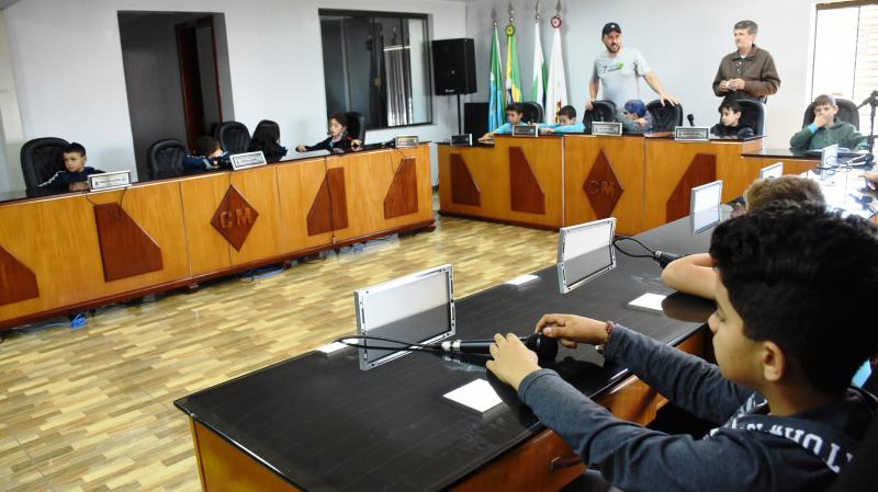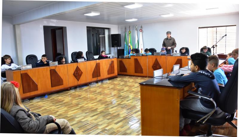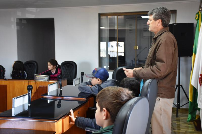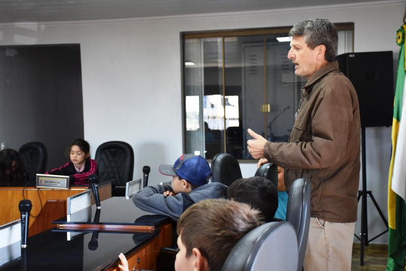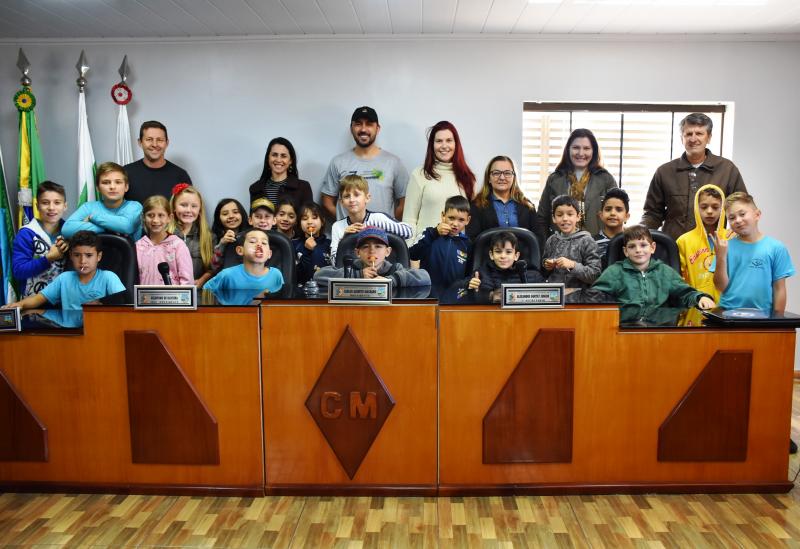Os vereadores Anderson Luiz de Oliveira e Alex Schroeder acompanharam a visita e falam sobre a importância e as funções da vereança, entre elas, a de legislar e fiscalizar o dinheiro público. Os alunos vieram acompanhados da diretora, Rosângela Negreli; da pedagoga, Rosane Toebe Zen e das professoras Silmara Aparecida de Oliveira e Elizete Trento.