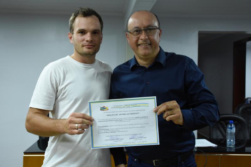 Por proposição do vereador Marcio dos Alexandre, bombeiros militares e servidores das Secretarias Municipais de Viação e Obras e Urbanismo receberam uma Moção de Honra ao Mérito por se destacarem em atuação contra incêndio ocorrido no último dia 25 de agosto em Laranjeiras do Sul, assolando uma residência no bairro Presidente Vargas. A homenagem foi durante a sessão ordinária da última segunda-feira, 02, no plenário da Câmara de Laranjeiras do Sul.