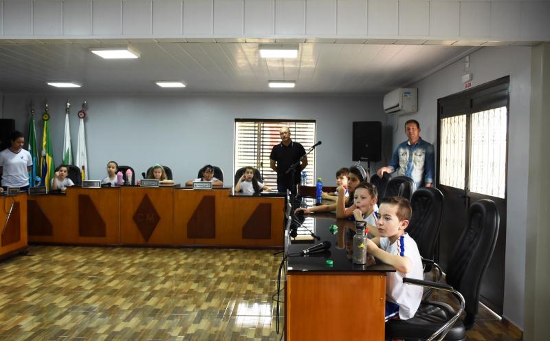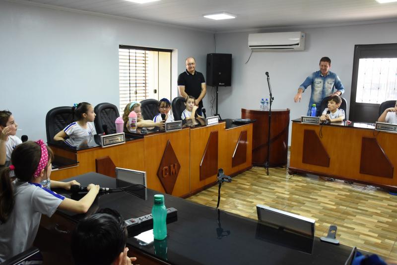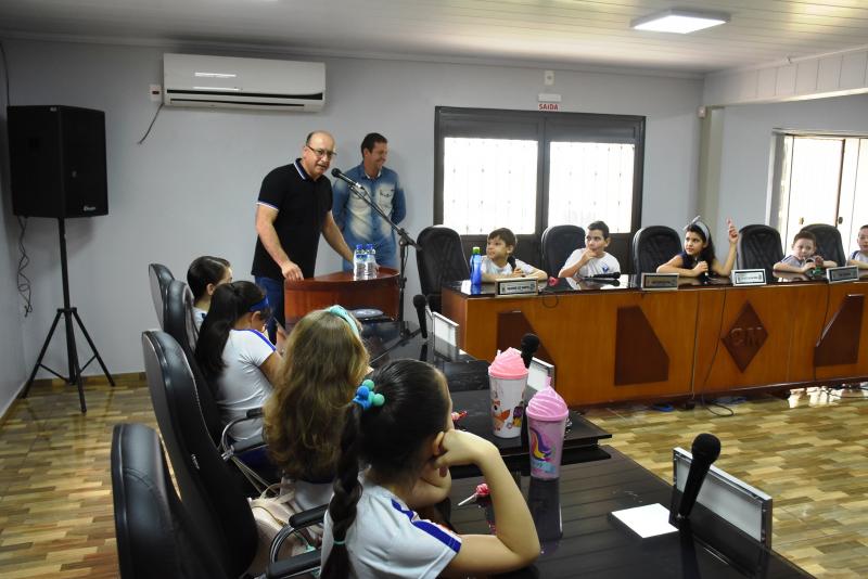 Na oportunidade os legisladores falaram sobre as atribuições do Legislativo, do funcionamento da Câmara e da importância da vereança. “As visitas são importantes, pois iniciam os pequenos sobre conceitos da política, os aproximando desta área. Muitas vezes, por exemplo, existe uma confusão relativa às atribuições dos Poderes Legislativo e Executivo, sendo que uma simples explanação pode resolver essa indagação e tantas outras”, explicou o 1° Secretário, Gurtat, que também falou às crianças sobre as atribuições da Mesa Diretora.