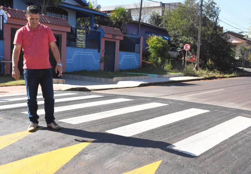O vereador Ivaldonir Panatto, “Bronca” esteve nesta semana fiscalizando as novas travessias elevadas construídas em Laranjeiras do Sul. Por meio da Secretaria Municipal de Obras e Urbanismo, com responsabilidade técnica do Engenheiro Civil e secretário da pasta, Leoni Luiz Meletti foram edificadas seis novas faixas elevadas, num investimento total de R$ 39,2 mil reais oriundos de recursos próprios da administração municipal.