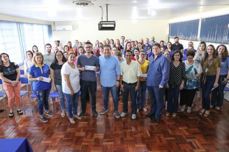 Por conta do Dia do Professor que ocorre no próximo dia 15 de outubro, nesta sexta-feira, 11, os educadores da rede municipal de ensino de Laranjeiras do Sul receberam pelo terceiro ano consecutivo as gratificações alusivas à data. O bônus, que é uma iniciativa da Prefeitura através da Secretaria de Educação e Cultura foi instituído em 2017, por meio de projeto aprovado na Câmara de Laranjeiras de Sul. Os vereadores Valmir Trindade-Sete e João Aires representaram o Legislativo no evento.