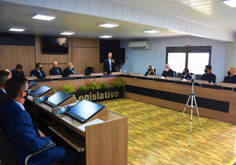 Marcada pela mensagem do Poder Executivo Municipal ao Legislativo e ao povo laranjeirense, o plenário da Câmara de Laranjeiras do Sul realizou na manhã desta segunda-feira, 1° de fevereiro, a solenidade de abertura dos trabalhos no ano de 2021. Além da presença dos vereadores que compõem a nova legislatura e do prefeito Berto Silva, participaram do ato o vice-prefeito, Valdemir Scarpari; o Secretário de Esportes, Rafael Nascimento e representantes da imprensa.