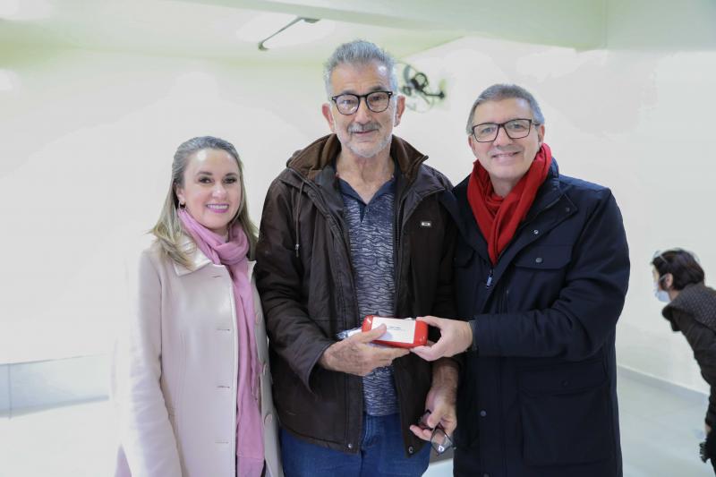 Atendimento oftalmológico de qualidade e gratuito é possível em Laranjeiras do Sul por meio do Programa “Olho Vivo”, da Prefeitura Municipal através da Secretaria de Saúde. A iniciativa que oferece à população maior qualidade no tratamento de causas oftalmológicas beneficiou 40 munícipes nesta terça-feira, 17, no Auditório da APAE. Essa foi a segunda ação de 2022. Além do vice-prefeito, Valdemir Scarpari, participaram da entrega os vereadores Valeide Scarpari, Valmir Trindade-Sete e Halisson Galvan.