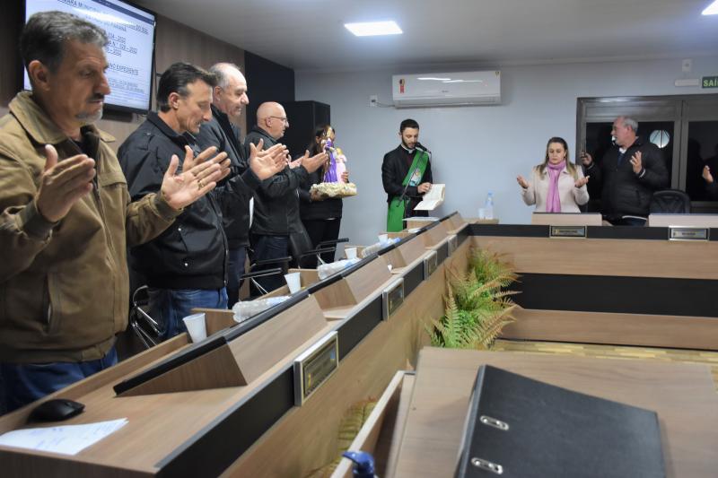 Presenças – Além de todos os parlamentares, estiveram presentes na sessão que marcou a entrega de uma Moção de Aplausos e Reconhecimento ao Diácono Anselmo Freski, os grupos religiosos Pastoral Familiar, Grupo Lareira e Jornada Jovem. Também participaram do ato os profissionais da educação municipal.