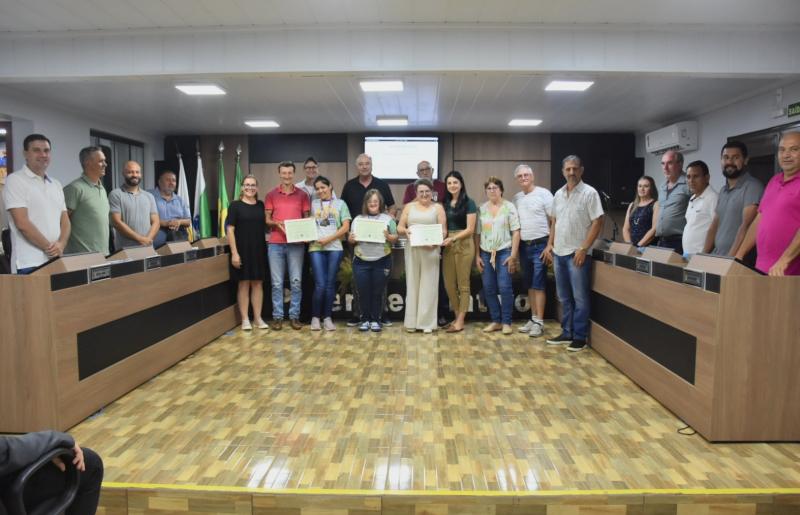 A aluna Silmara Savaris ficou em 1° lugar no arremesso de peso e 2° lugar no salto em distância. Já Lis Caroline obteve o 1° lugar na corrida de 50 metros rasos e foi destaque no lançamento de pelota. De acordo com o 1° Secretário da Câmara e propositor, vereador Darci Massuqueto, o título conferido pelo Legislativo é um modo de mostrar para a sociedade o resultado do trabalho realizado diariamente pela instituição. “Participando das atividades e recebendo o reconhecimento, alunos e alunas podem apresentar a forma como progridem. É um modo de mostrar que são capazes”, destacou o vereador.