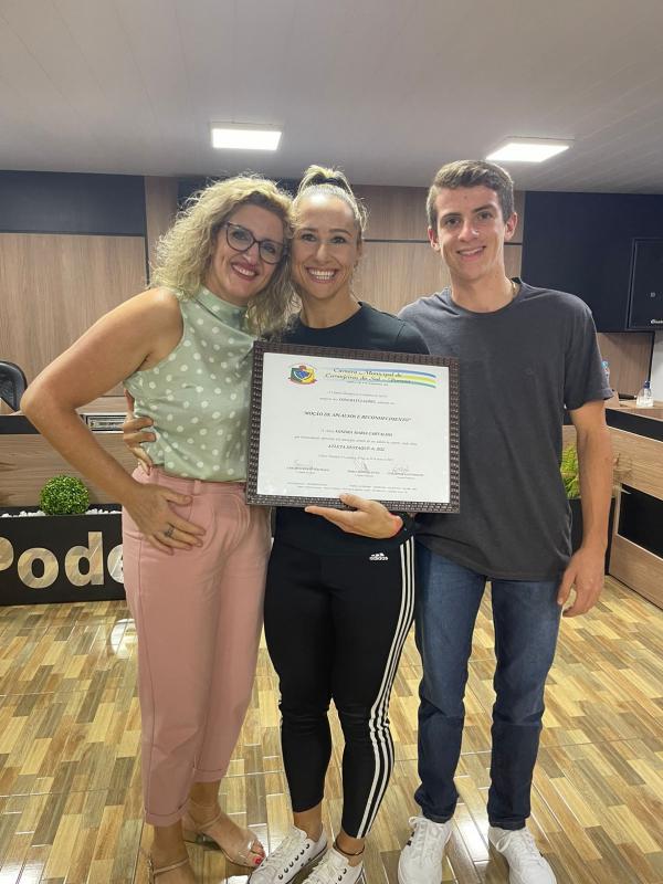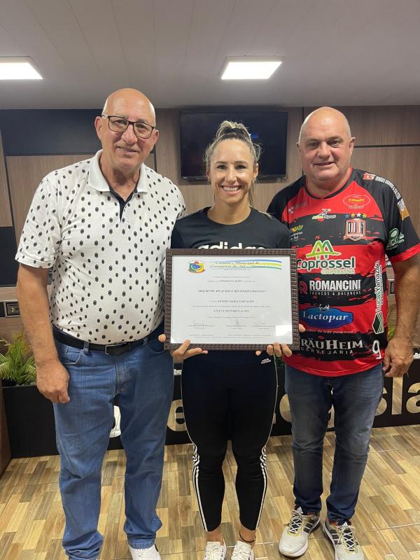 Em noite de muita emoção e homenagens, na última segunda-feira, 20 de março, a Câmara Municipal de Laranjeiras do Sul entregou a MOÇÃO DE APLAUSOS E RECONHECIMENTO Nº 001/2023 Autoria: Vereadores Darci Massuqueto, Carlos Alberto Machado, Ivaldonir Panato e demais vereadores. Súmula: Confere esta Moção de Aplausos e Reconhecimento a atleta DESTAQUE de 2022, SANDRA MARIA CARVALHO, que honrosamente representa este município através do seu talento no esporte,e concedeu a MOÇÃO DE APLAUSOS E RECONHECIMENTO N.º. 002/2023 Autoria: Vereador Juvinha Viola e demais vereadores. Súmula: Confere esta Moção de Aplausos e Reconhecimento a Professora ZÉLIA SCHIMBOSKI GAVLIK, professora aposentada, que muito contribuiu com a educação em nosso município.