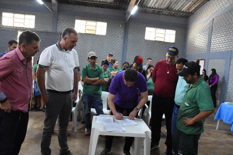 Acompanharam a assinatura do termo o presidente da Câmara, Carlos Alberto Machado (Magrão) e os vereadores Ivaldonir Panatto, Darci Massuqueto e Valmir Trindade.