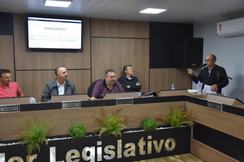 Referendado pelo vereador Tarso Campigotto, foi inscrito ontem para fazer uso da palavra o Sr. José Brugnara – Presidente do Sindicato dos Trabalhadores Rurais, que falou sobre a Marcha das Margaridas.
