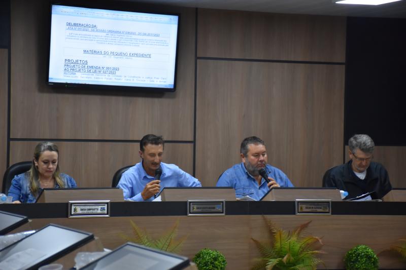 Já os projetos que foram aprovados em primeira discussão em sessão ordinária e em segunda votação em extraordinária foram os seguintes: projeto 024/2023 de autoria do vereador Rodrigo Scheis que dispõe sobre o incentivo de doação das notas fiscais em estabelecimentos comerciais, referente aos créditos do Programa Nota Paraná, para entidades sem fins lucrativos do município de Laranjeiras do Sul; também o projeto 032/2023 que autoriza o Poder Executivo Municipal realizar locação de imóvel e concessão de direito real de uso para a expansão e desenvolvimento econômico, industrial, a fim de impulsionar a geração de emprego e renda. Esse terreno deverá ser locado para a empresa Resinas Polezze, que deve expandir suas atividades no município.