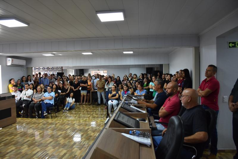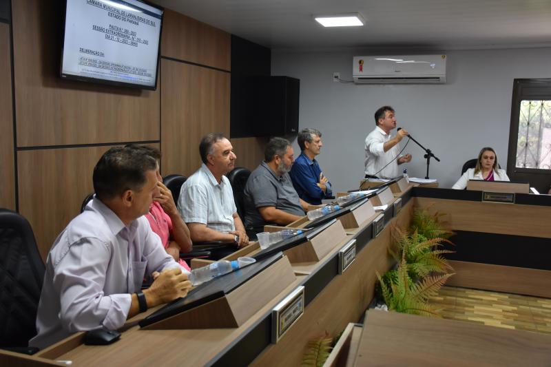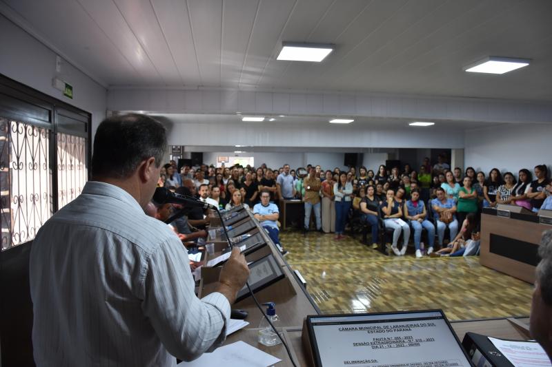 A Câmara de Vereadores de Laranjeiras do Sul realizou sessão extraordinária nesta quinta-feira (21) para receber substitutivo ao projeto de Lei 038/2023 que dispõe sobre a reestruturação e gestão do Plano de Cargos, Carreira, Remuneração e Valorização dos profissionais da educação da rede pública municipal de ensino de Laranjeiras do Sul – Estado do Paraná e revoga a lei municipal nº 056/2017.