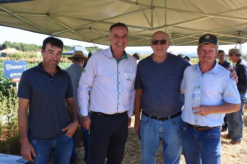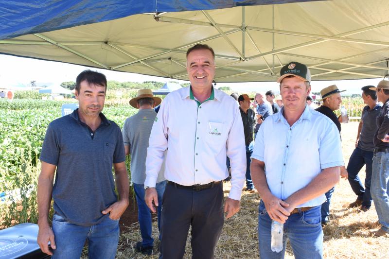 O presidente da Câmara de vereadores Carlo Alberto Machado Magrão e os vereadores Celso de Azevedo e Darci Massuqueto participaram nesta quinta-feira (1º) do Dia de Campo da cooperativa Coprossel. Um evento já tradicional na cidade que apresenta as melhores variedades de soja, milho, entre outras culturas.