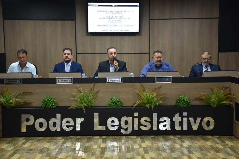 Como determina o regimento interno da Casa de Leis, a primeira parte da sessão que inicia o ano é reservada ao prefeito municipal para que ele possa apresentar uma mensagem do Poder Executivo aos vereadores. O prefeito Berto Silva destacou que esse é o último ano do mandato e ressaltou a grande parceria teve nos últimos três anos com a Câmara Municipal. “Total sintonia com o Poder Legislativo, com o conjunto de vereadores, mantendo a altivez que tivemos até agora. Defendendo os interesses de Laranjeiras do Sul, respeitando um ao outro, nunca erguemos a voz. Estamos dando exemplo de compromisso com o futuro da nossa cidade”, destaca Berto Silva.