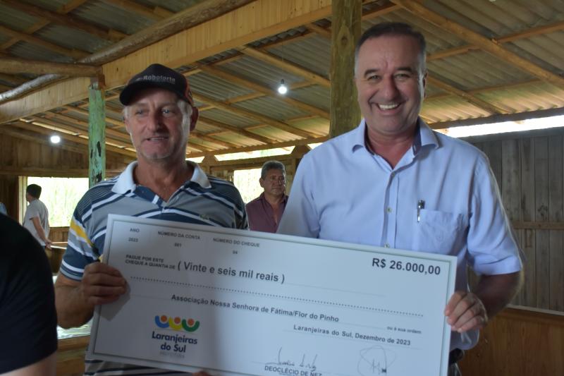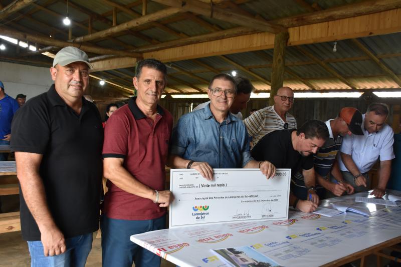 - R$ 20 mil para a Associação da Feira do Produtor Rural de Laranjeiras do Sul – AFELAR wir utilizará o recurso para compra de cozinha, eletrônicos, materiais de uso em geral, mesa de manipulação Inox, moenda elétrica de cana, lavadora de alta pressão, notebook, dispenser papel toalha, dispenser álcool, Gel/ saboneteira, Rolo de mangueira, carrinho enrolador de mangueira e lixeira com pedal.