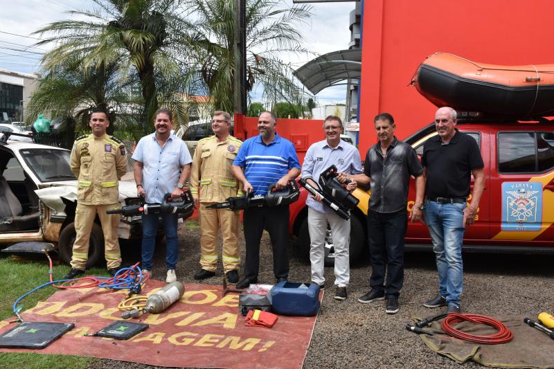 Os vereadores Darci Massuqueto, Ivaldonir Panatto e Ney Becker participaram na manhã desta quinta-feira (29) de entrega de novos equipamentos ao Corpo de Bombeiros de Laranjeiras do Sul. Foram entregues quatro novas ferramentas de trabalho aos bombeiros: