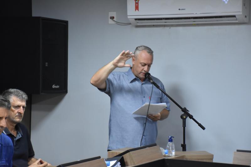 Na noite de ontem, em sessão ordinária, o presidente da Câmara de vereadores Carlos Alberto Machado Magrão empossou um novo vereador: Valdecir Giordano, conhecido como Sorto (Podemos). O vereador Sorto assume uma cadeira na Câmara após o pedido de licença do vereador Celso de Azevedo (Podemos) para assumir a Secretaria Municipal de Indústria e Comércio.