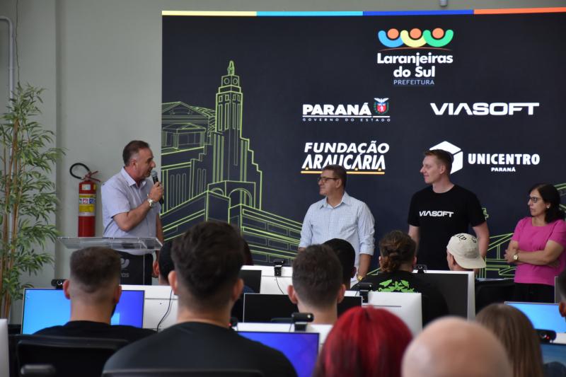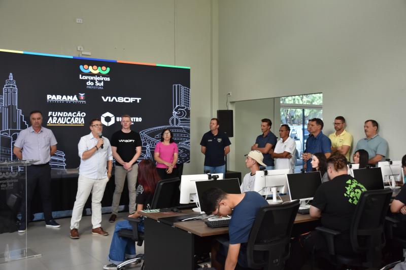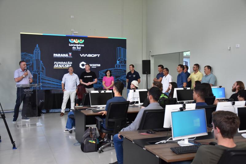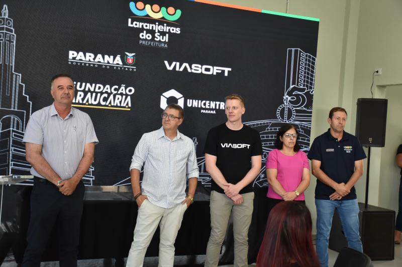 Foi realizada na tarde de hoje (02) a aula inaugural do Geração Paraná digital no Laranjeiras Tecnológica. O programa é uma iniciativa da Prefeitura de Laranjeiras do Sul com o Governo do Paraná, Fundação Araucária, Viasoft e Unicentro. São 40 vagas distribuídas em duas turmas, com bolsa para alunos do Ensino Médio e Ensino Superior.