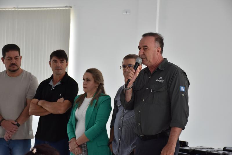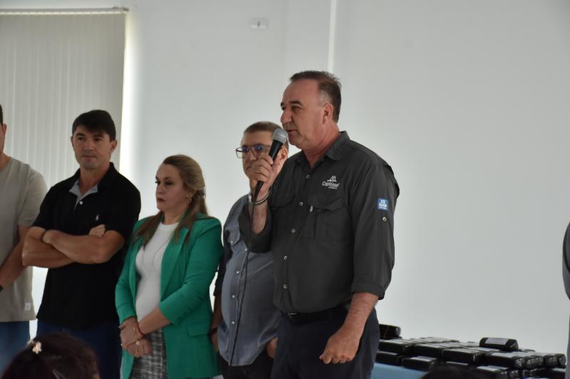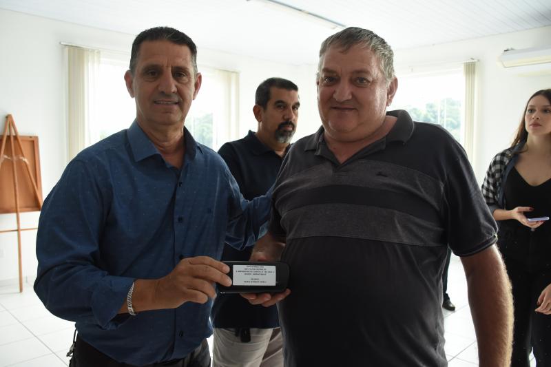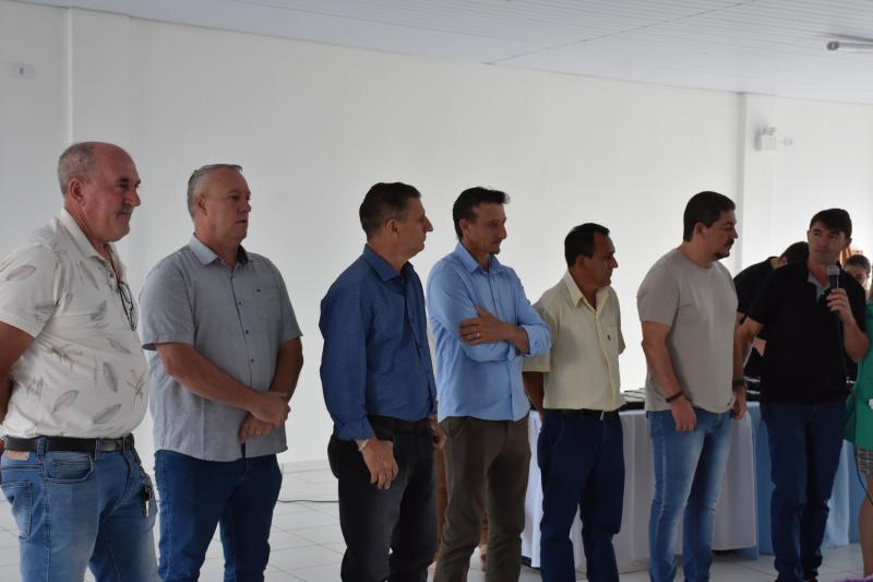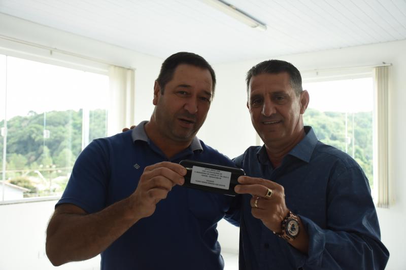 Estiveram na entrega o presidente da Câmara Carlos Alberto Machado Magrão e os vereadores Ivaldonir Panatto, Ney Becker, Valdecir Sorto, Valmir Trindade Sete, Tarso Campigotto, Valeide Scarpari e Antonio Joel Demétrio.