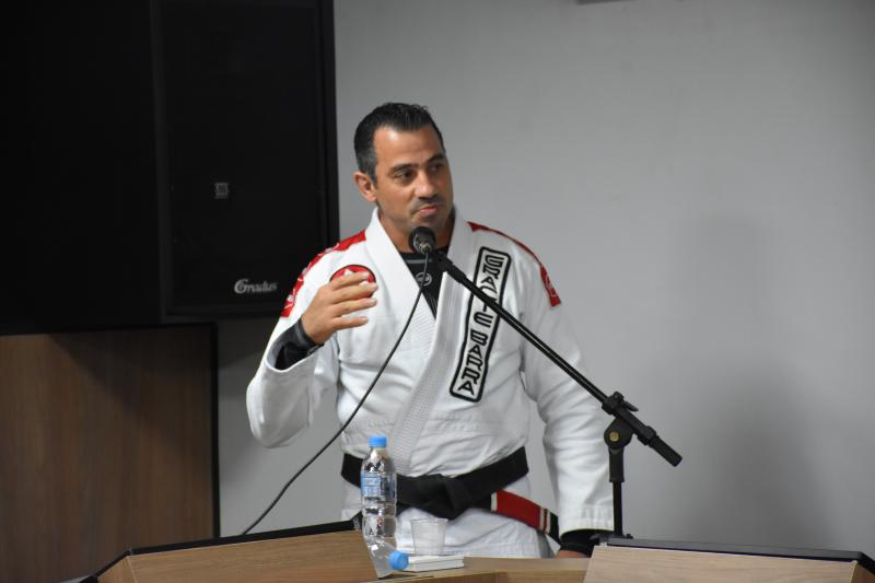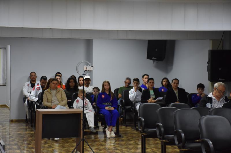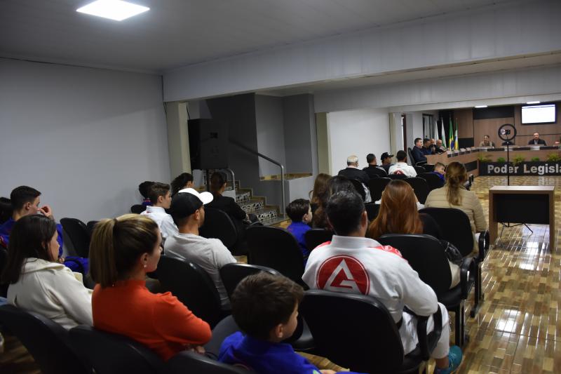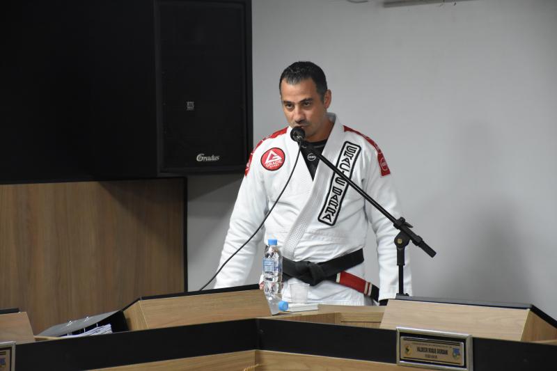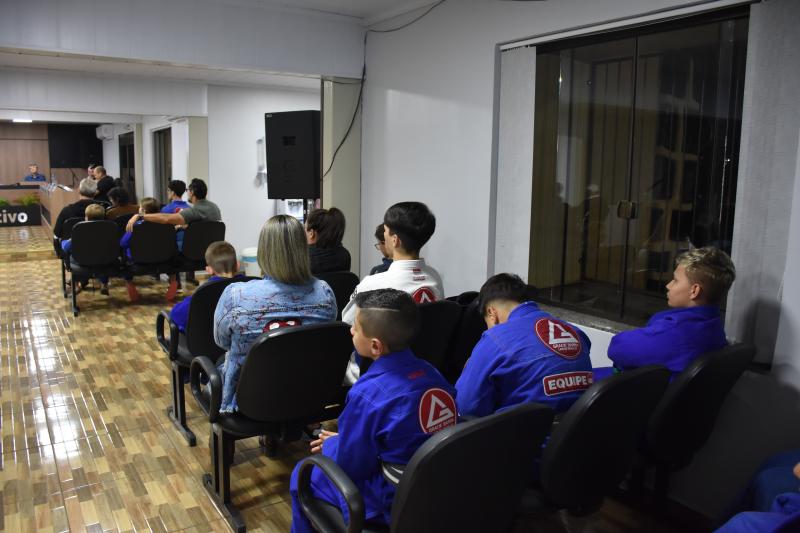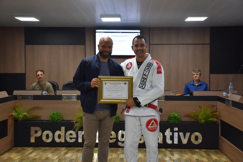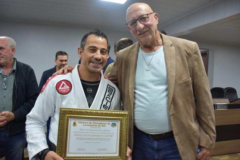 Quem também usou a palavra ontem na sessão ordinária foi Rodrigo Scopel, professor de Jiu-Jitsu, que recebeu Moção de Aplausos para a equipe Escola Gracie Barra Laranjeiras do Sul, representada por ele, que é graduado Faixa Preta. “É gratificante estar aqui, receber essa honraria. Viemos a um tempo trabalhando com o desenvolvimento das crianças desde quatro anos de idade e também tenho alunos de 58 anos. Recebo a moção como um reconhecimento desse trabalho”, afirmou Scopel.