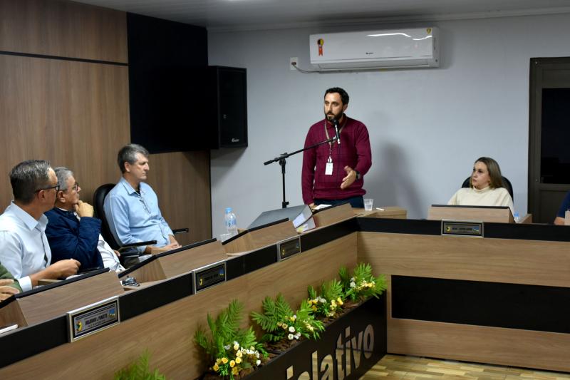 -011/2025, de autoria do vereador Juvinha Viola, que declara e reconhece como entidade de utilidade pública municipal, a Associação de Moradores e Agricultores da Linha Valério, no Distrito do Passo Liso. Estes projetos voltam a ser analisados em segunda e última votação na próxima sessão.