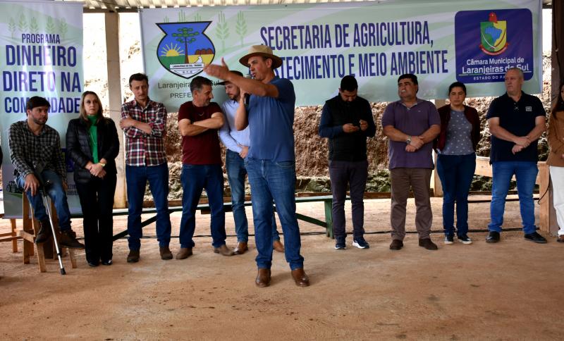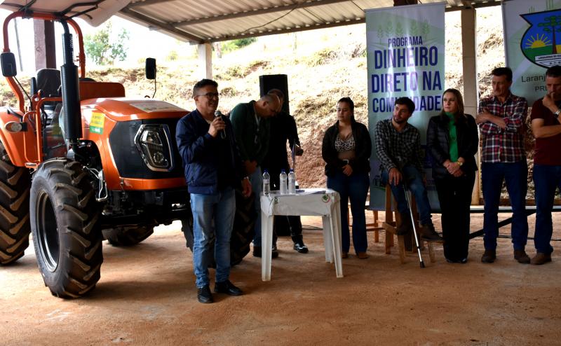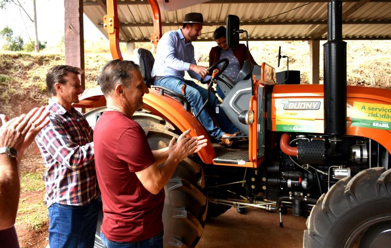 Na última sexta-feira, 11, o Dinheiro Direto na Comunidade – programa que é uma parceria entre a Prefeitura de Laranjeiras do Sul e Câmara de Vereadores – realizou mais uma etapa de entrega. Desta vez a beneficiada foi a comunidade do Recanto da Natureza. Na oportunidade houve o repasse de um trator agrícola novo, da marca BUDNY, equipado com motor de 75 cavalos de potência, tração 4x4, direção hidráulica e diversos recursos que garantem desempenho e eficiência no campo.