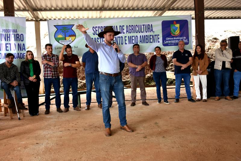 Presenças - Estiveram presentes no evento desta sexta-feira o prefeito Jaison Mendes; o vice-prefeito, Ademilson Moraes; o Secretário de Agricultura, Alcir Pires; o presidente da Câmara, Juvinha Viola, além dos vereadores Ivaldonir Panatto, Almir de Paula Xavier, Pedro Conrado Filho, Fernando Mattei, Marcio Gonçalves, Tarso Campigoto, Valdecir Giordani, Janice Couto Nessa e Valeide Scarpari Lascoski, além de secretários municipais e famílias do Recanto da Natureza.
