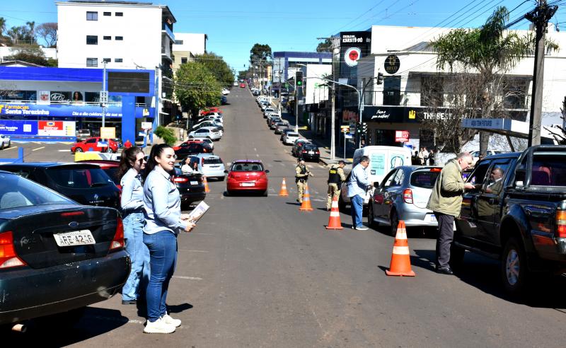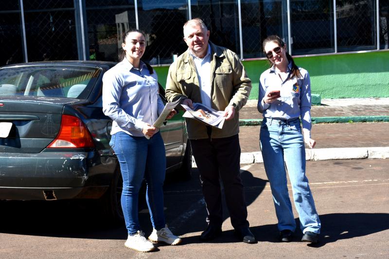 Nesta segunda-feira (11), os vereadores Almir de Paula Xavier, Fernando Luis Mattei e José Domiciano, além dos servidores Igor Mateus Ferreira Vaz, Kelly Elaine Ferreira e Maria Eduarda Rocha Schroeder, participaram da blitz educativa “Agosto Lilás”, realizada na Rua XV de Novembro, esquina com a Coronel Guilherme de Paula. A ação teve como objetivo conscientizar e orientar motoristas e pedestres sobre a prevenção e o combate à violência contra a mulher.