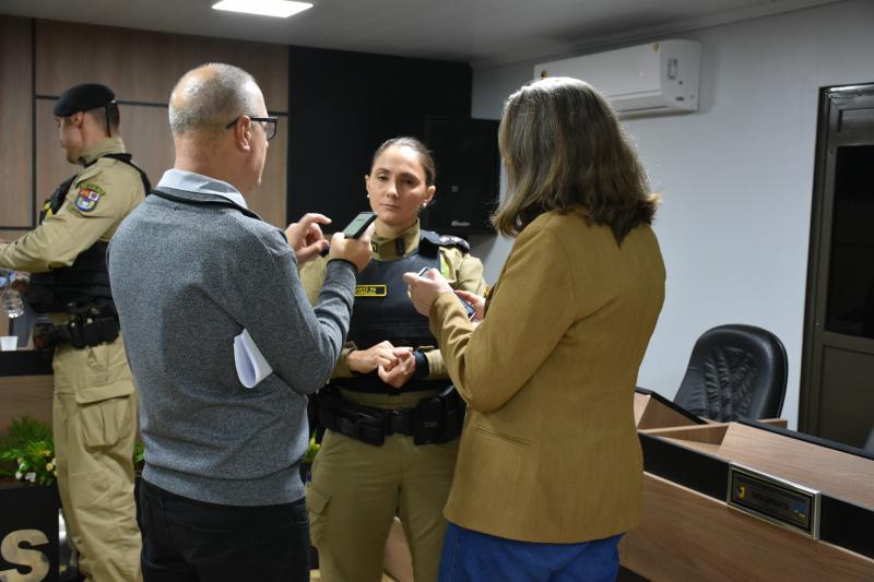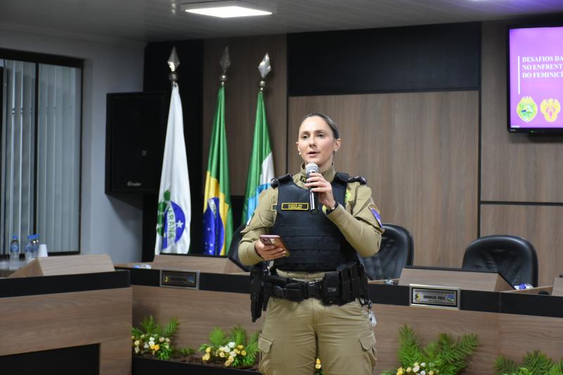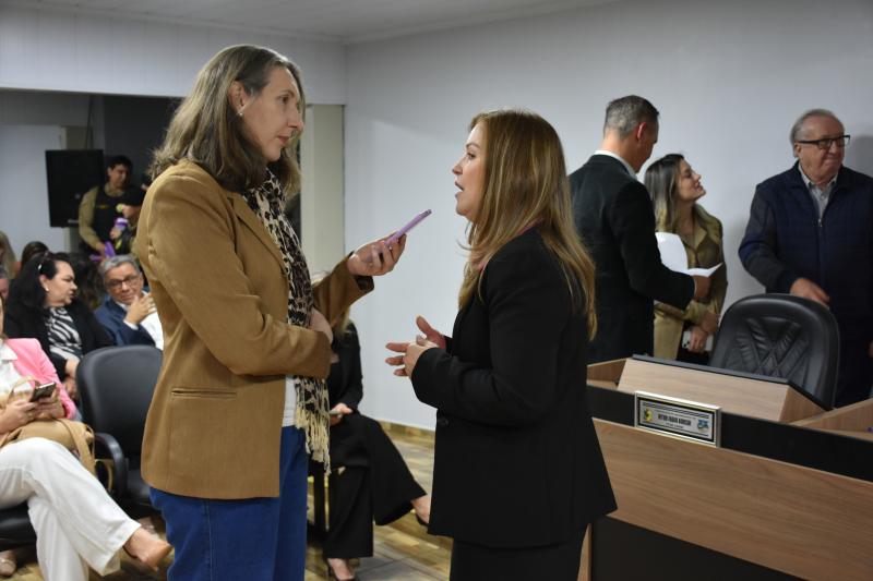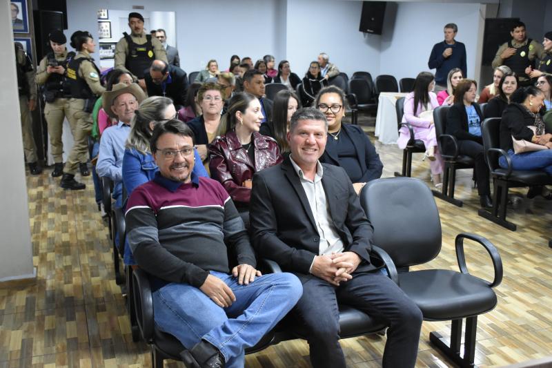 O ato solene lotou o plenário e contou com a presença de autoridades municipais, regionais e estaduais. Entre elas, a Deputada Federal licenciada e atual secretária estadual da Mulher, Igualdade Racial e Pessoa Idosa, Leandre Dal Ponte. Também prestigiaram a cerimônia o presidente da Câmara, vereador Juvinha Viola, vice-prefeito, Ademilson de Moraes, a primeira-dama do município, Daniele Mendes; representantes da Patrulha Maria da Penha, da Rede de Proteção à Mulher, as procuradoras parlamentares Thalita Muller (Nova Laranjeiras) e Elenice Silmara de Oliveira (Rio Bonito do Iguaçu), além dos vereadores Almir de Paula Xavier e Tarso Campigotto. Lideranças religiosas também marcaram presença, como o pastor Daniel Cristiano e o coordenador do movimento Fé e Política, Valdecir Miler, que abençoaram o início dos trabalhos.