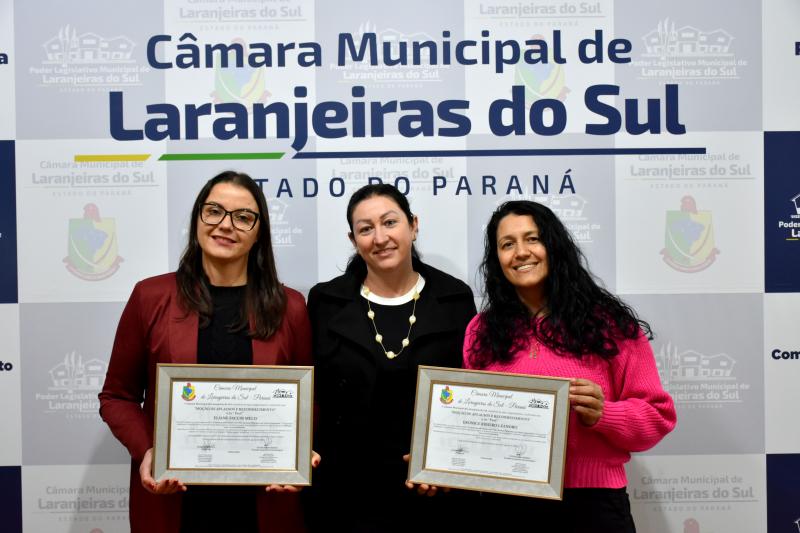 Durante a 27ª Sessão Ordinária da Câmara Municipal, realizada nesta segunda-feira, 25 de agosto, as professoras Eronice Ribeiro Leandro e Eliane Faccin Melo foram homenageadas com uma Moção de Aplausos e Reconhecimento, concedida pelo Legislativo em razão da conquista de um prêmio nacional na área de sustentabilidade. As educadoras venceram um concurso nacional com o projeto “Transformando plástico em vida: hortas e pufes para um futuro sustentável”, que utiliza resíduos plásticos na construção de hortas escolares e pufes, promovendo educação ambiental, criatividade e conscientização entre os alunos.