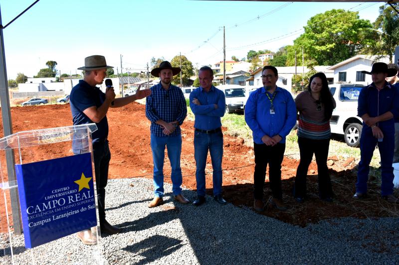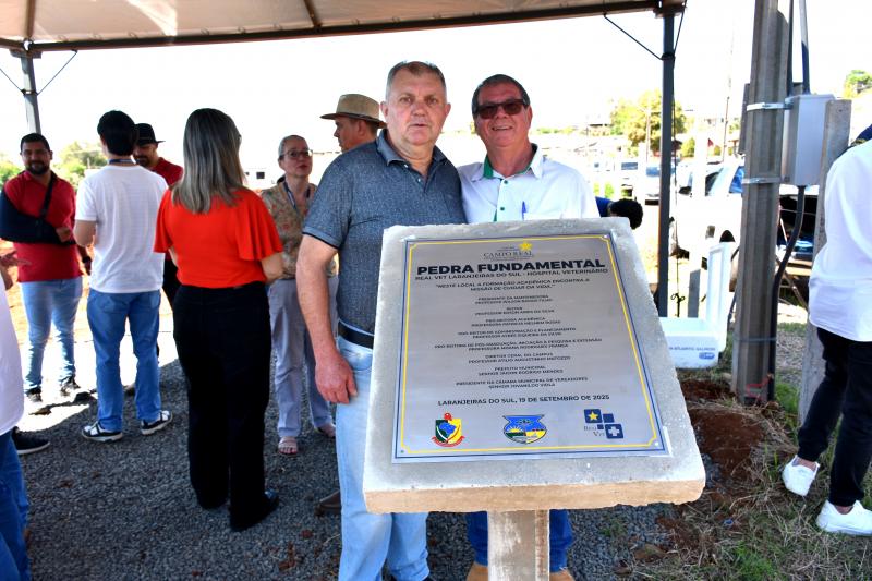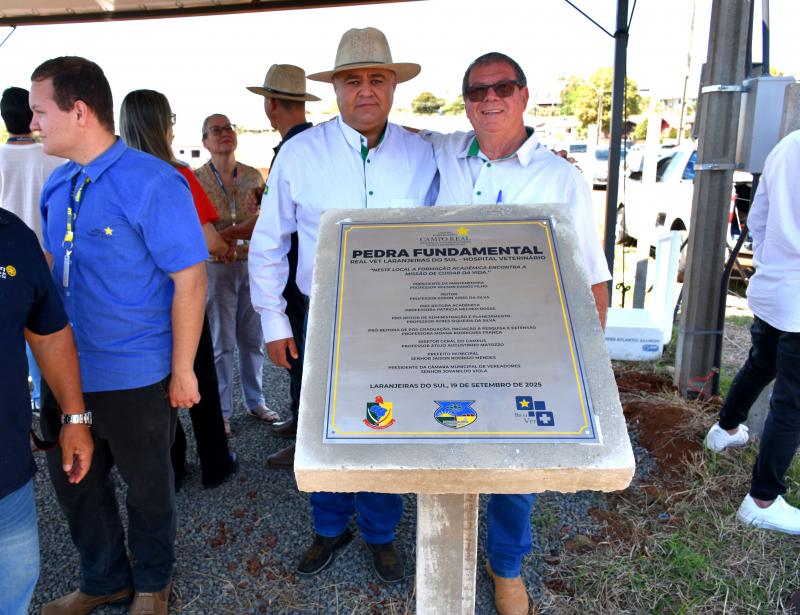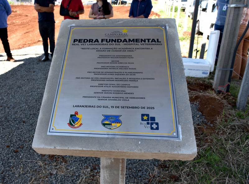 Na manhã desta sexta-feira, 19 de setembro, foi realizado o lançamento da pedra fundamental do Hospital Veterinário da Campo Real – Campus de Laranjeiras do Sul, um marco histórico para a educação superior e a saúde animal da região. O evento simboliza o início oficial das obras do Real Vet Laranjeiras, o primeiro hospital veterinário da Cantuquiriguaçu, que nasce com a missão de unir ensino, cuidado com a vida e desenvolvimento social.