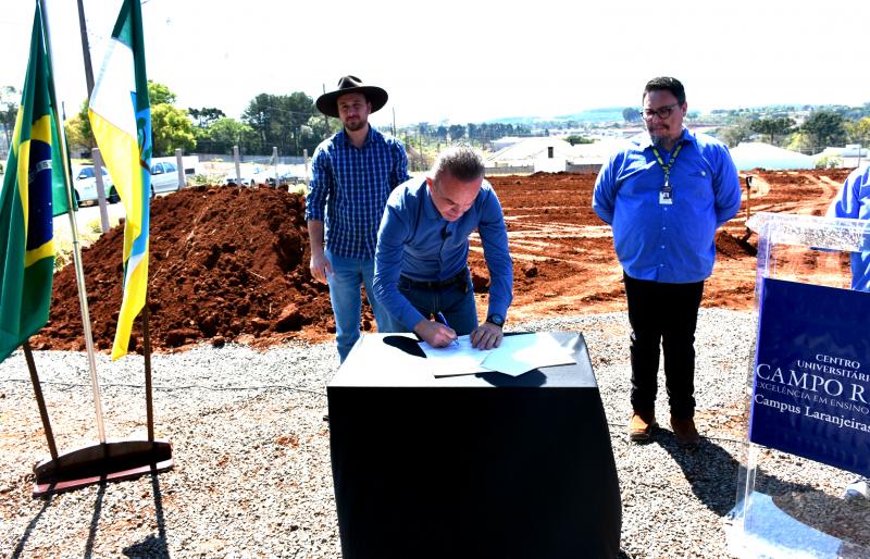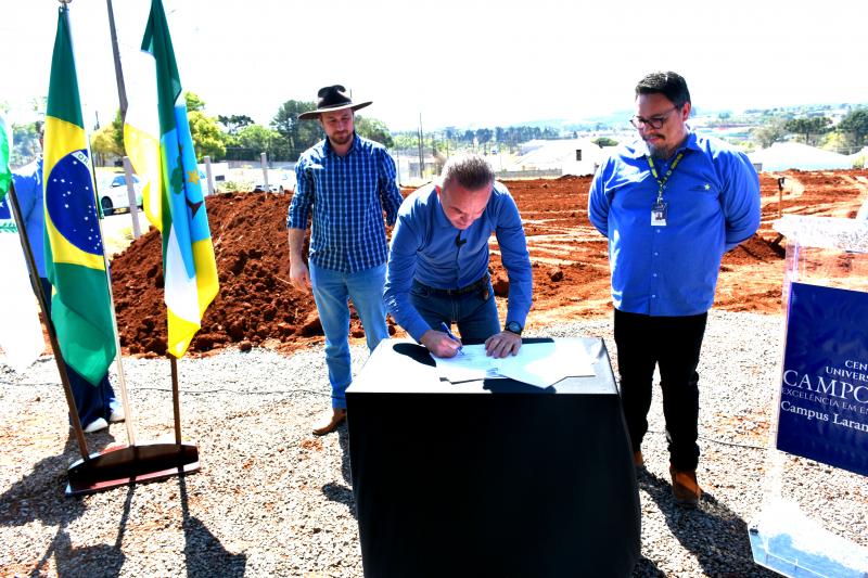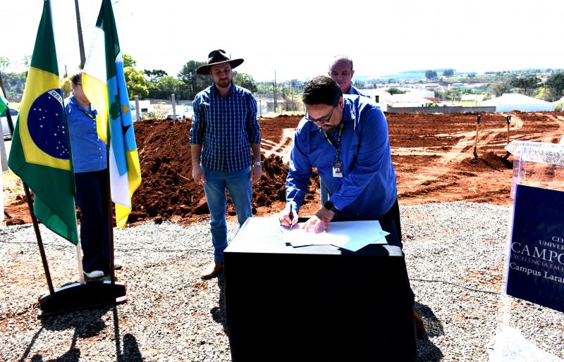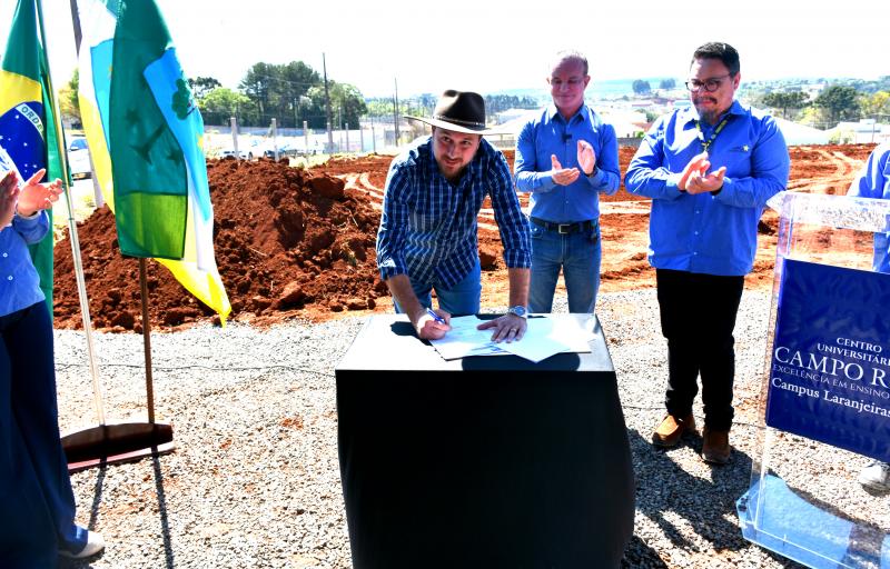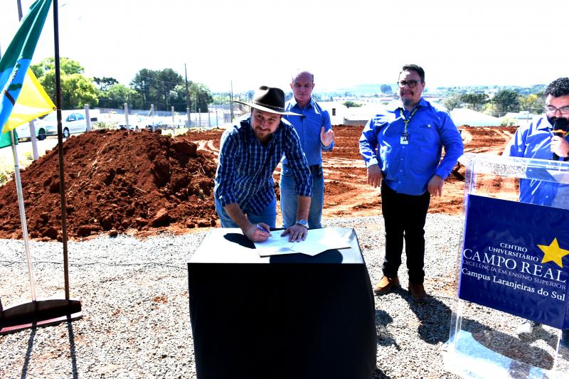 Assinatura do edital de cessão do terreno pela Prefeitura de Laranjeiras do Sul à Campo Real, passo essencial para a construção do hospital veterinário.