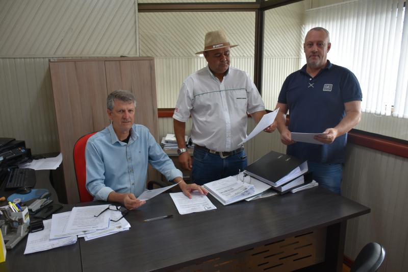 A Comissão de Obras e Serviços Públicos da Câmara de Vereadores de Laranjeiras do Sul realizou, nesta segunda-feira, 24 de novembro, uma reunião para análise de um Projeto de Lei encaminhado pelo Poder Executivo. O encontro foi presidido pelo vereador Fábio Borsoi, acompanhado do relator Valdecir Roque Giordani. Também integra a comissão, como secretário, o vereador Tarso Campigotto. A reunião contou com o assessoramento técnico do consultor legislativo Gilmar Zocche, que auxiliou no estudo da matéria.