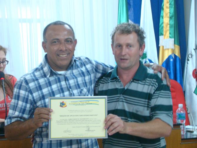 No Grande Expediente foi feito a entrega de Moção de Aplausos e reconhecimento, a todos os funcionários públicos municipais responsáveis pela coleta de lixo. A homenagem foi proposta pelo vereador Darci Massuqueto e aprovada por unanimidade por todos os vereadores. Na oportunidade, além dos funcionários homenageados, também estiveram prestigiando a sessão os secretários municipais além da prefeita Sirlene Svartz.