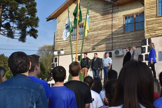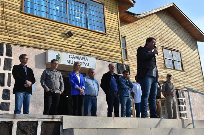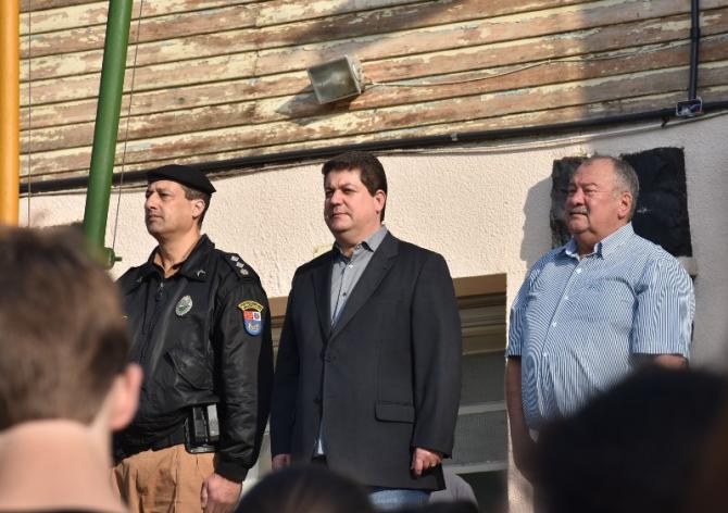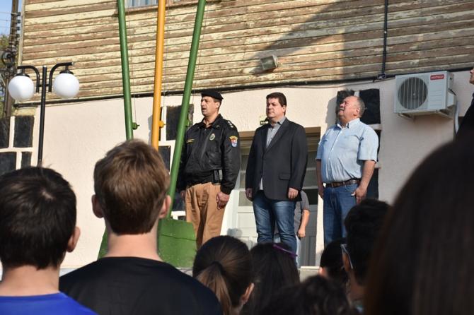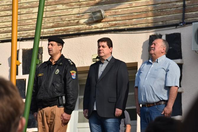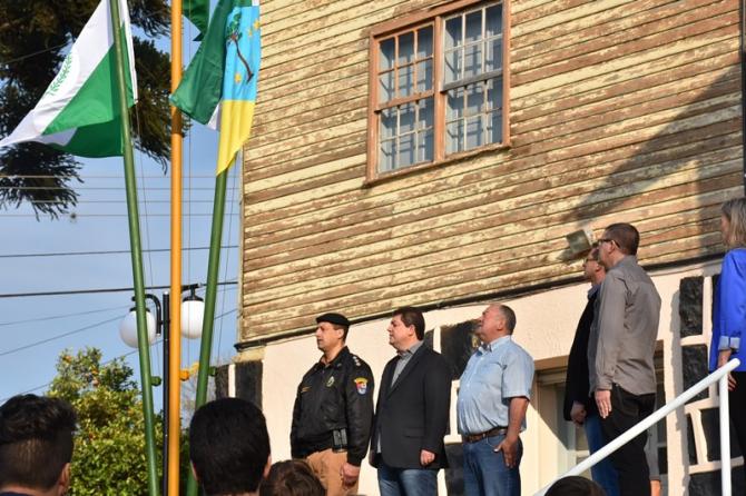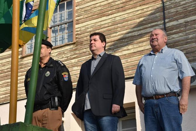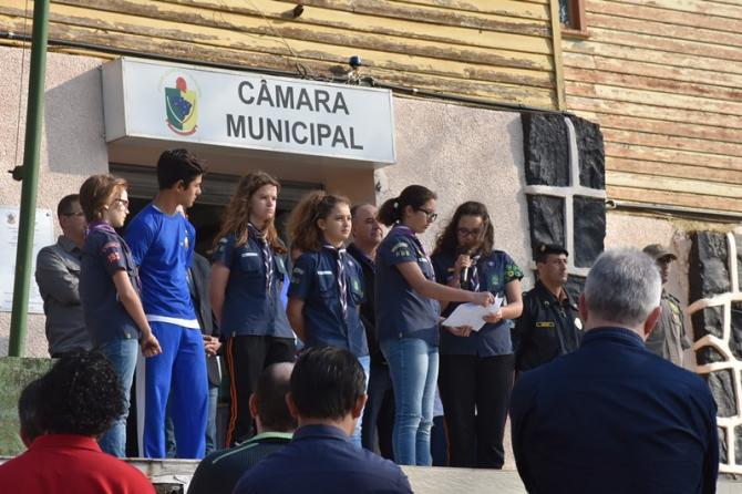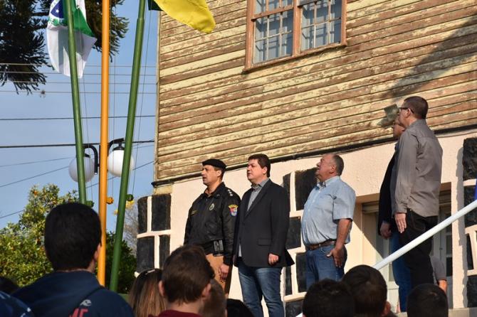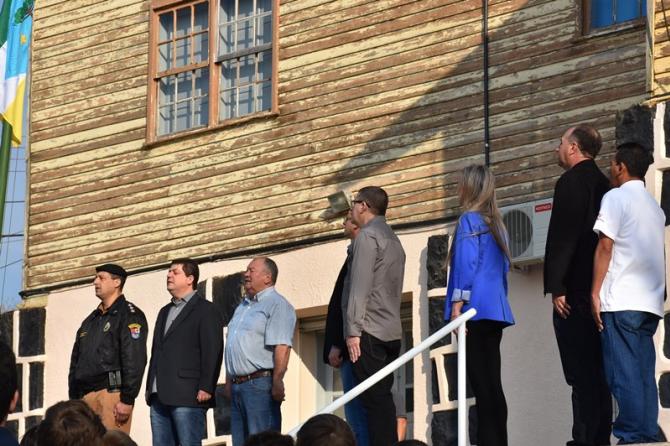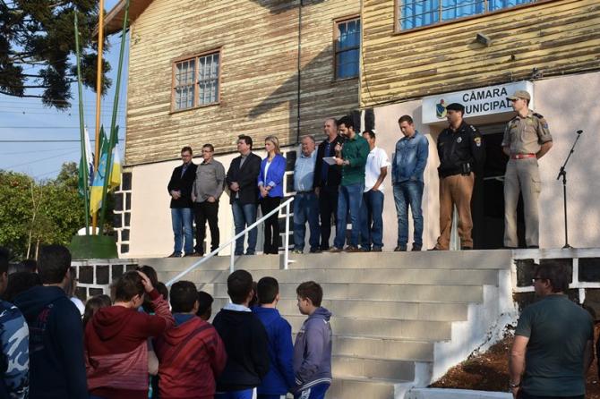 Participaram da solenidade os vereadores João Schefer, Carlos Machado, Valmir Trindade Sete, Alex Schroeder; o prefeito Berto Silva; o vice-prefeito Valdemir Scarpari, Secretários Municipais, autoridades policiais, servidores do Legislativo e Executivo, professores e alunos das escolas Floriano Peixoto, Valdemar Boeira, Aluísio Maier, Leocádio José Correia e da APAE (Associação de Pais e Amigos dos Excepcionais).