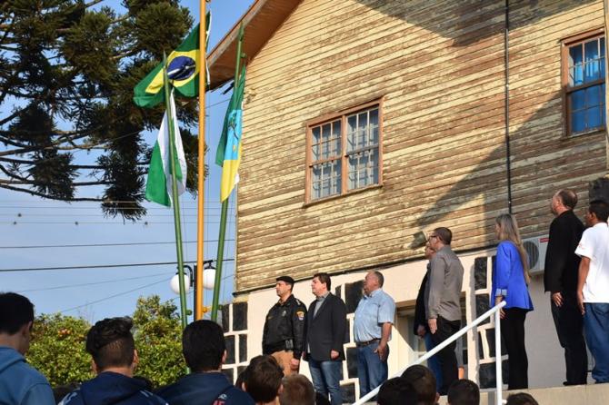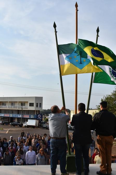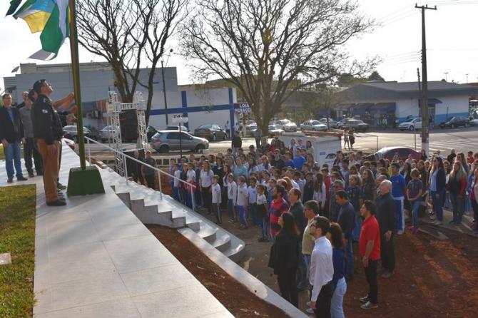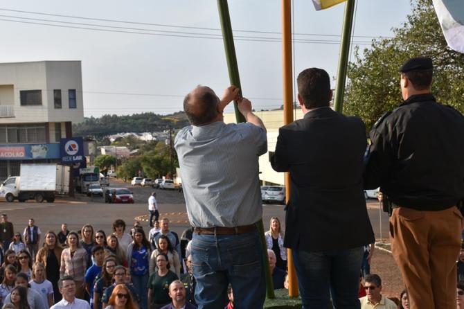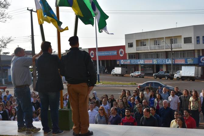 Na manhã desta sexta-feira (1°), Poderes Legislativo e Executivo realizaram a solenidade de abertura da Semana da Pátria, no piso externo da Câmara de Laranjeiras. A cerimônia foi marcada por hasteamento de bandeiras e canto dos Hinos Nacional Brasileiro, do Paraná, de Laranjeiras do Sul e da Independência. As festividades encerram no próximo dia 7, com ato cívico na Praça José Nogueira do Amaral, a partir das 8h.