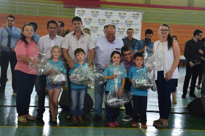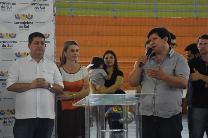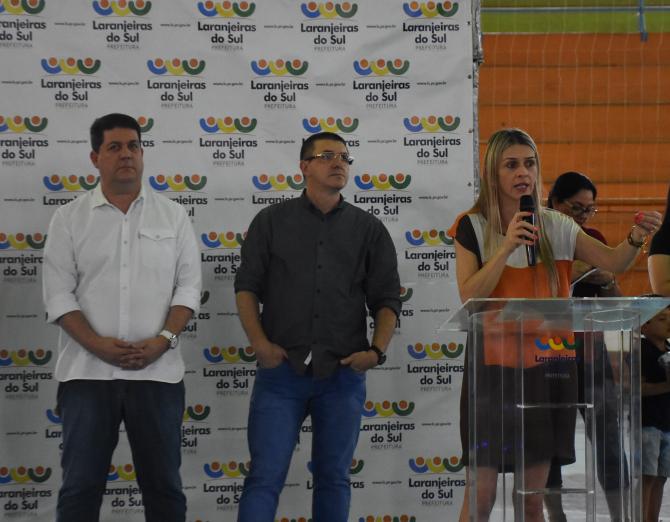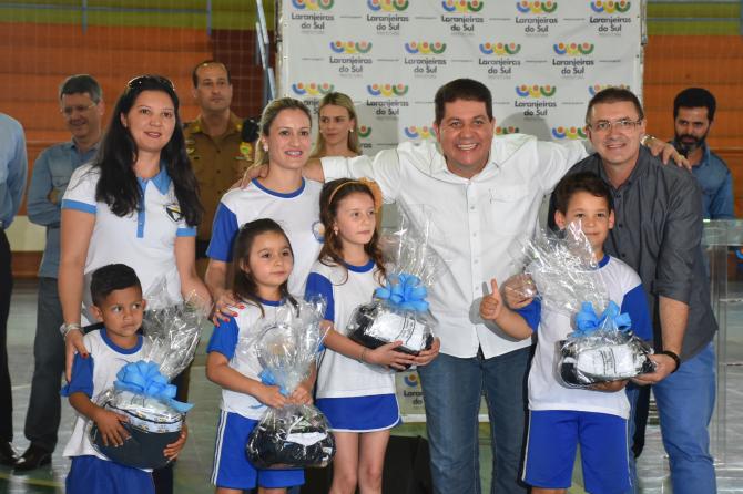 Na tarde da última quarta-feira (27), vereadores prestigiaram a entrega de 4 mil conjuntos escolares para alunos da rede municipal de ensino. A iniciativa da Prefeitura de Laranjeiras, por meio da Secretaria de Educação, tem por objetivo garantir a igualdade entre os estudantes e proporcionar segurança na identificação das crianças. O kit contém duas camisas, uma calça, jaqueta, duas meias e um tênis.