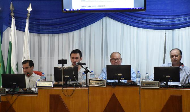Quatro matérias foram aprovadas em 1ª discussão. Todas de autoria do Executivo. O projeto 029/17 refere-se ao Plano Plurianual, já a súmula 30/2017 dispõe sobre a Concessão de Direito Real de uso de bens imóveis do município. Também foram aprovadas as súmulas 037/17, tratando da alteração do Artigo 79 da Lei 030/04, além do projeto de lei 040/17, acerca da alteração do símbolo do cargo de Diretor do Departamento de Contabilidade e a criação do cargo de Diretor de Turismo.