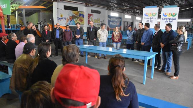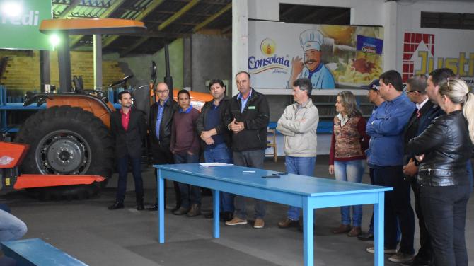 Nesta sexta-feira (27), vereadores participaram da entrega de um trator e uma ensiladeira para produtores do Campo Mendes. O maquinário, estimado em R$ 98 mil reais, é fruto de emenda parlamentar destinada pelo deputado federal Hermes Parcianello.