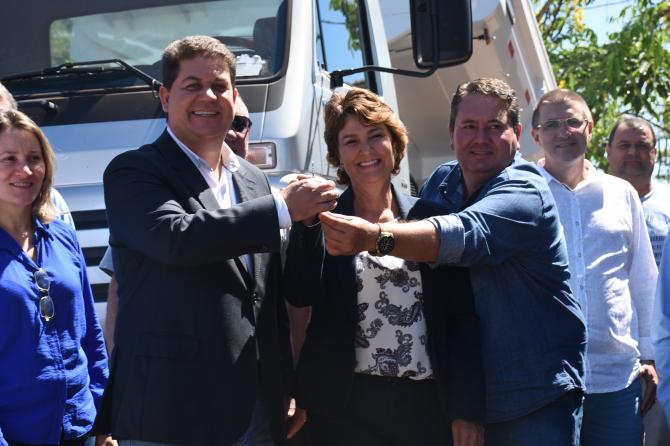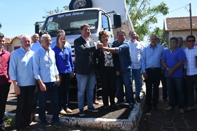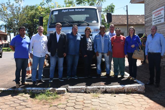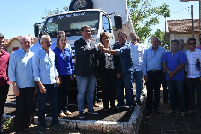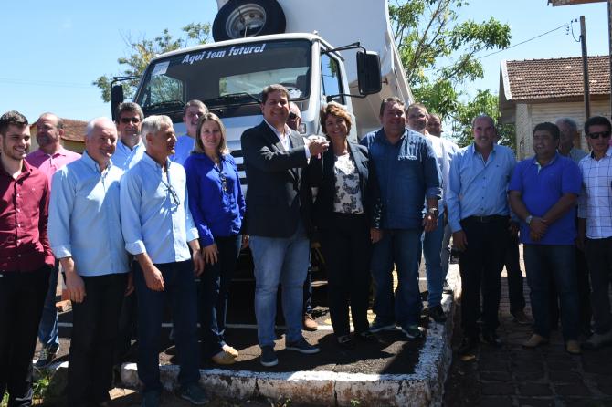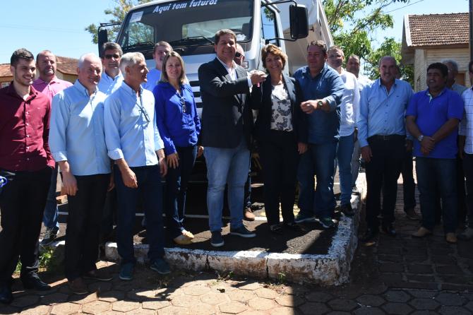 Nesta quinta-feira (15), os vereadores Ney Becker, Clarice Viola e Anderson de Oliveira prestigiaram a entrega de um veículo Volkswagen Worker 17.230, destinado a Secretaria de Agricultura por intermédio da deputada estadual Cristina Silvestri. O caminhão basculante no valor de R$ 190 mil contemplará os trabalhos do Programa Porteira Adentro.