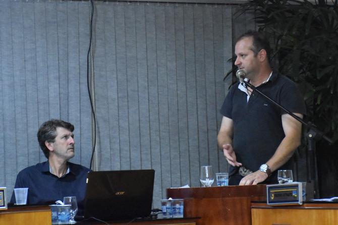 Na sequência deu entrada requerimento de autoria do vereador Anderson de Oliveira, solicitando a presença do Secretário de Transporte, Odilon Cunha, na sessão de 05 de março, para esclarecer o motivo de máquinas da prefeitura estarem aterrando terreno no loteamento Bom Pastor, às margens arroio Alves Pires. "Recebemos denúncias e, por se tratar de área privada, solicitamos esclarecimentos", explanou.