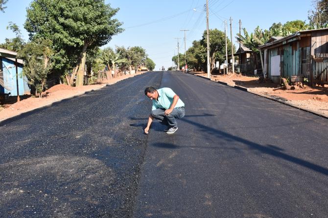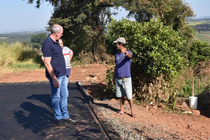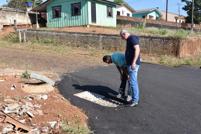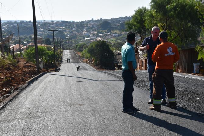 Atendendo uma antiga reivindicação de moradores, a Prefeitura Municipal tem dado continuidade às obras de pavimentação asfáltica nos bairros de Laranjeiras do Sul. Na última sexta-feira (4), os vereadores Valmir Trindade-Sete e Ney Becker vistoriaram o trabalho no loteamento Santo Antônio de Pádua e Cristo Rei.