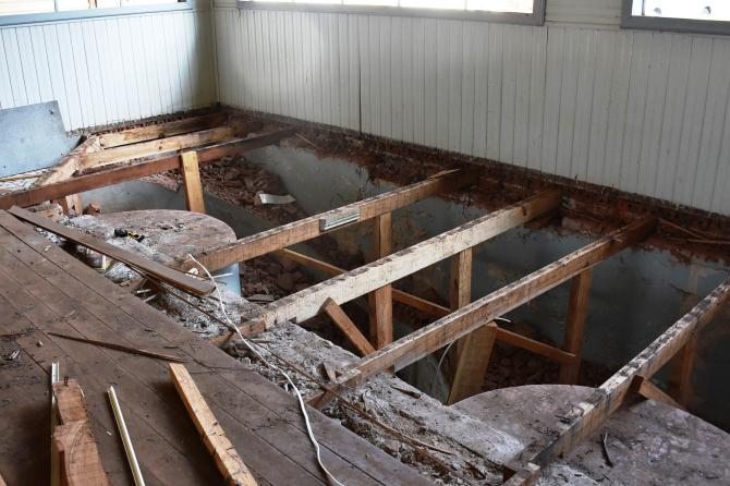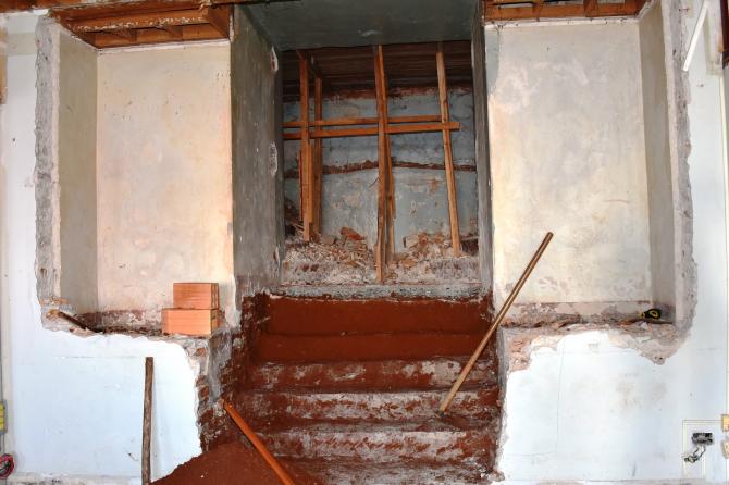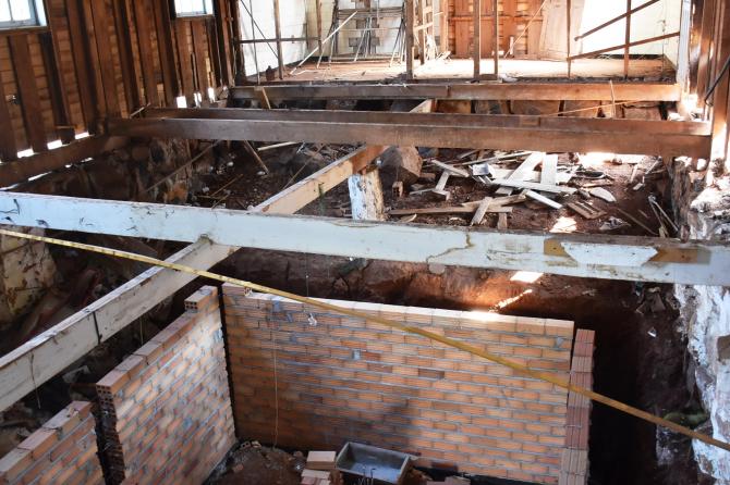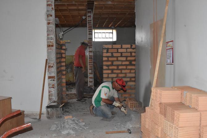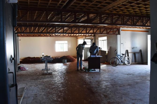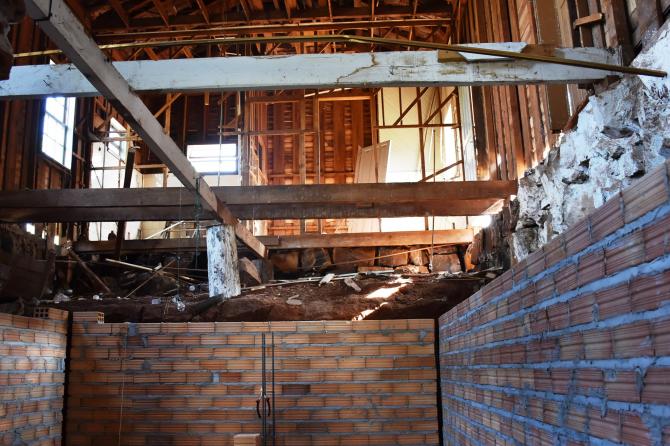 Após desocupação do prédio superior por parte da Secretaria de Obras e Urbanismo, carpinteiros mexem nas estruturas de madeira para, na sequência, iniciar as divisórias. No local serão construídas salas adminitrativas e gabinetes dos vereadores, mantendo o máximo das características originais do espaço