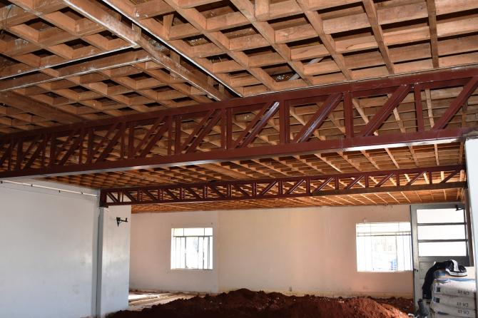 Atualmente os trabalhadores estão mexendo no madeiramento da estrutura superior, onde ficarão os gabinetes de vereadores e salas administrativas. Na parte inferior estão sendo construídos banheiros, cozinha e almoxarifado. Empresa responsável é a BMB Construtora Eireli, de Nova Laranjeiras.