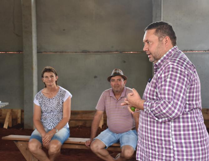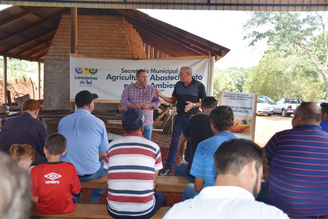 Aprovado por lei na Câmara de Laranjeiras do Sul, o Programa Dinheiro Direto na Comunidade chegou a Associação Nossa Senhora de Fátima do Rio Leão. A iniciativa da atual administração, executada pela Secretaria de Agricultura, beneficia as entidades sem fins lucrativos do município, por meio de aplicação de recursos financeiros direto nas associações, clubes de mães e demais entidades laranjeirenses. Foi assim que na última quinta-feira (28) o prefeito Berto Silva e vereadores entregaram um novo pavilhão a comunidade.