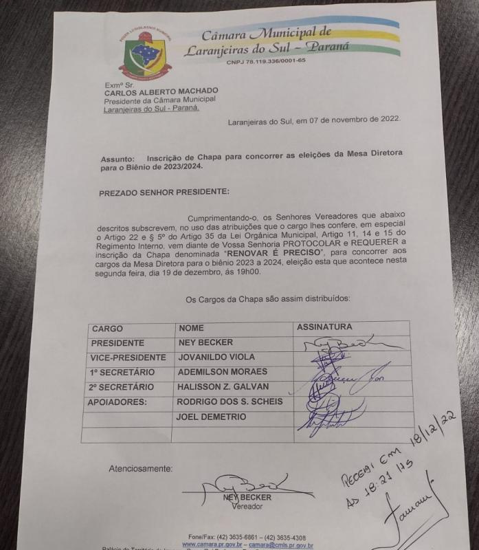 “Renovar é preciso” é a segunda chapa inscrita para concorrer à Mesa Diretora Biênio 2023-2024