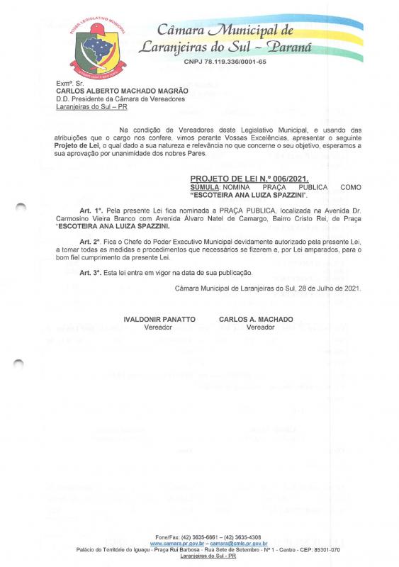 Vereadores propõem nominar praça pública em homenagem à “Escoteira Ana Luiza Spazzini”