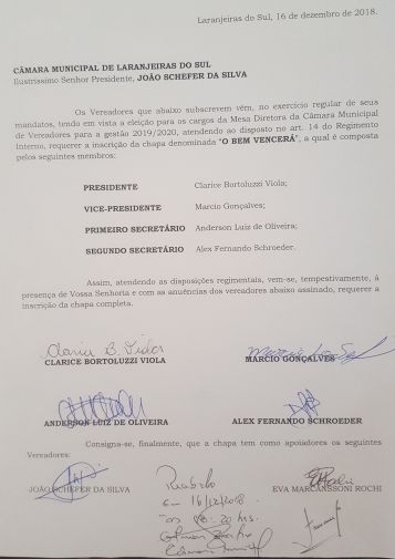 Câmara de Laranjeiras realiza sessão ordinária 012/18